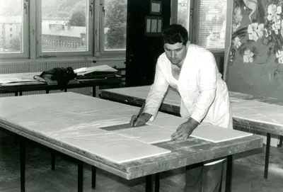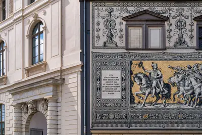 In 1953, the Department of Artistic Wall Design was established at the State Porcelain Manufactory in Meissen. It carried out commissions throughout the GDR, enriching not only state buildings but also churches, cafés, hotels and shops with architectural art. Later, commissions were carried out for clients from West Germany, the USA and Japan. The designs came from the manufactory's own collective of artists and external artists. This map provides an overview of the murals in Dresden and Meissen. Some have already fallen victim to remodelling and renovation, while others can still be viewed on site, which we cordially invite you to do with this map.